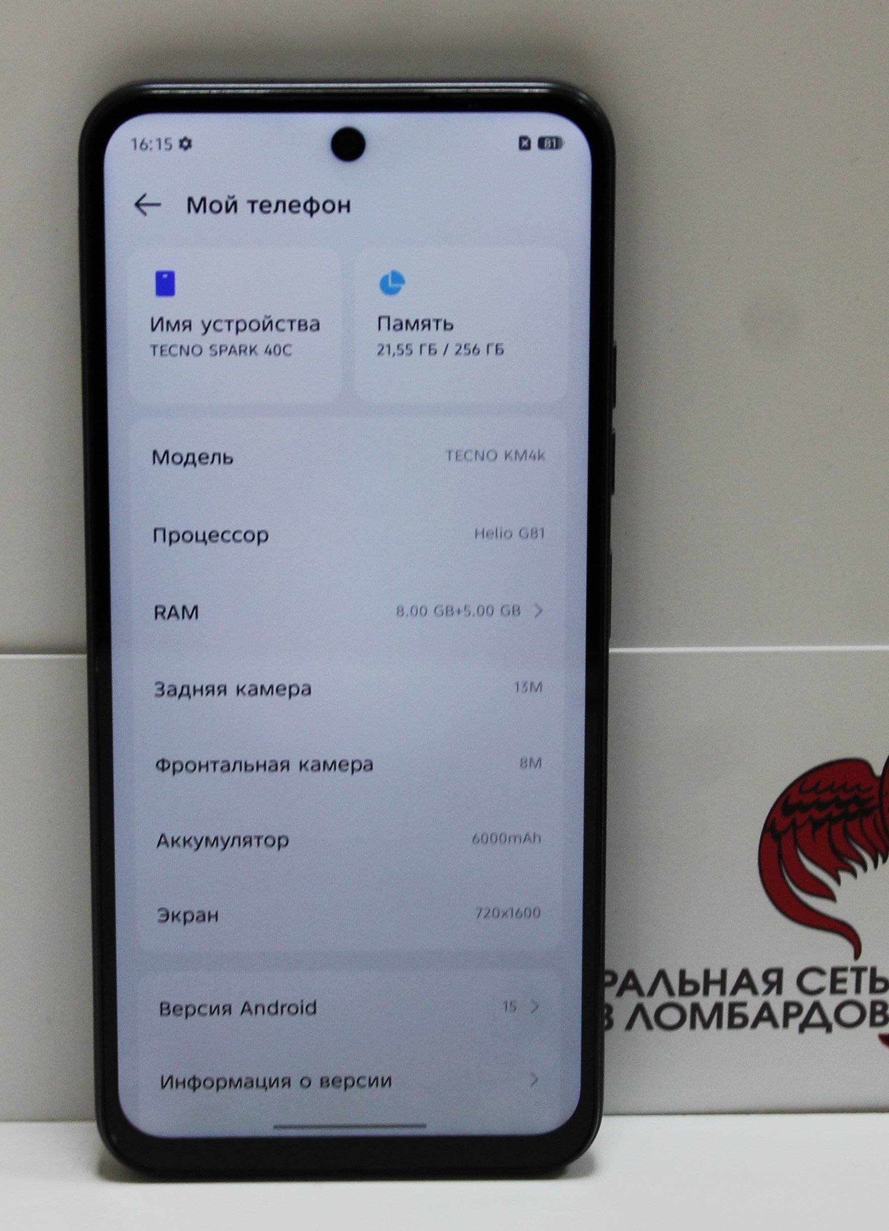 Организация: ООО "Ломбард ЛЮЭ"Артикул: 16.04.2026 / 197-26-0305 / 000989913Базовая единица: штАдрес производителя: Сведения отсутствуютБренд: TECNOБренд производителя: Tecno