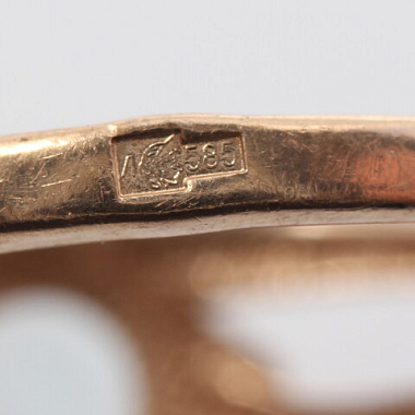 Кольцо золото 585, общий вес - 4.74 г, чистый вес - 4.24 г Металл: золото, Проба: 585, Общий вес: 4.74, Чистый вес: 4.24
