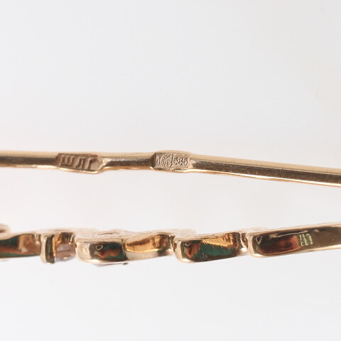 Глубина ушка, мм: 5Вид замка: ПетляВставки: ДаШирина, мм: 5Клеймо: ДаСостояние: бывший в употреблении
